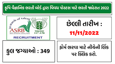 ASRB Recruitment 2022 : Agriculture Scientists Recruitment Board has published recruitment notification for Non-research Management Positions. As per ASRB notification, 349 vacancies to be filled for Project Coordinator, Head of Division, Head of Regional Station/ Centre and Senior Scientist-cum-Head positions. Candidates can submit their application through online mode. The last date for the submission of application for Project Coordinator and Head of Division is 31.10.2022. Candidates applying for Senior Scientific -Head should forward their application on or before 11.11.2022.